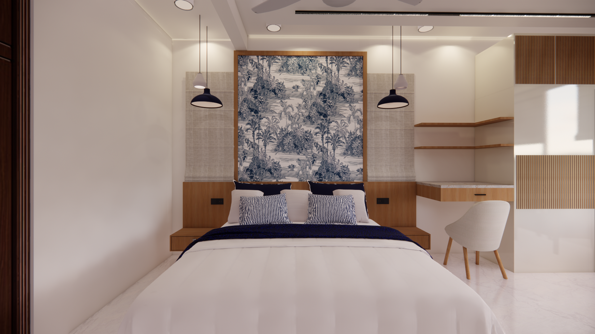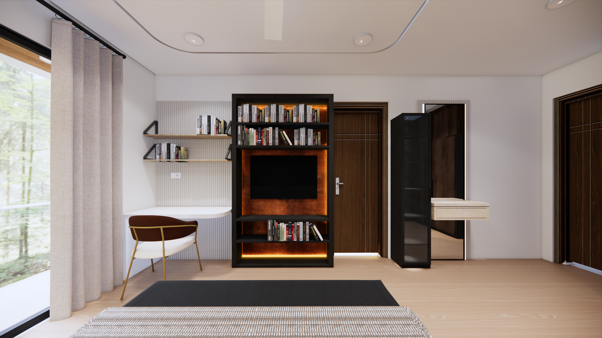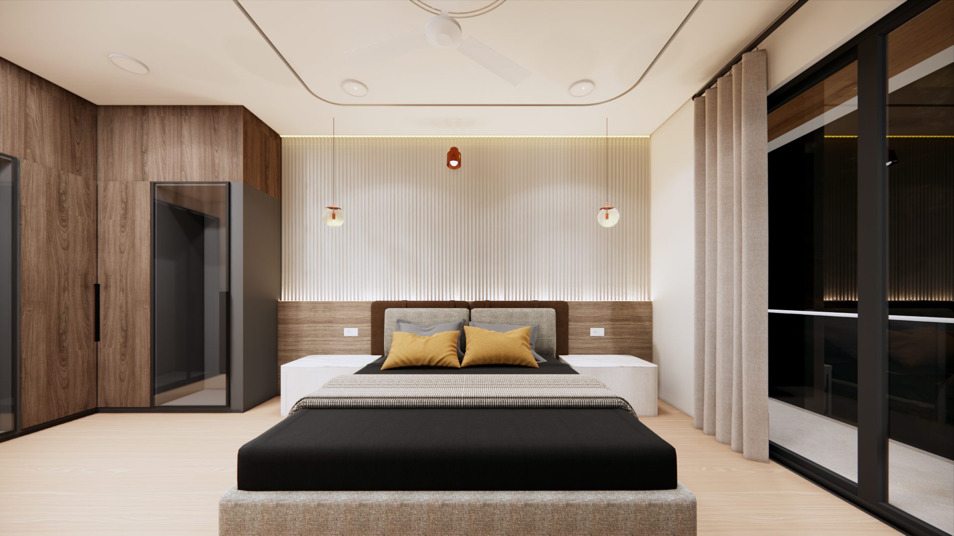 The upper level is designed to provide privacy and individuality for the younger members of the family. It includes the master bedroom, separate bedrooms for the son and daughter, and a quiet study area. Each space is designed with modern comforts, natural light, and personal character while maintaining a cohesive design language throughout the home.