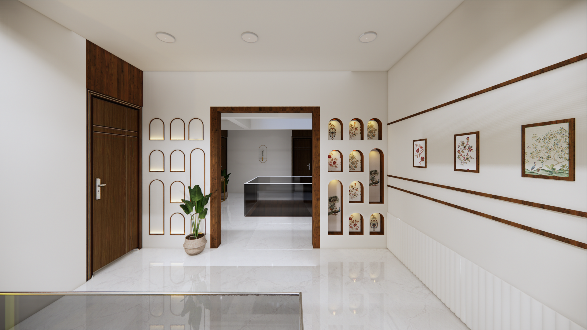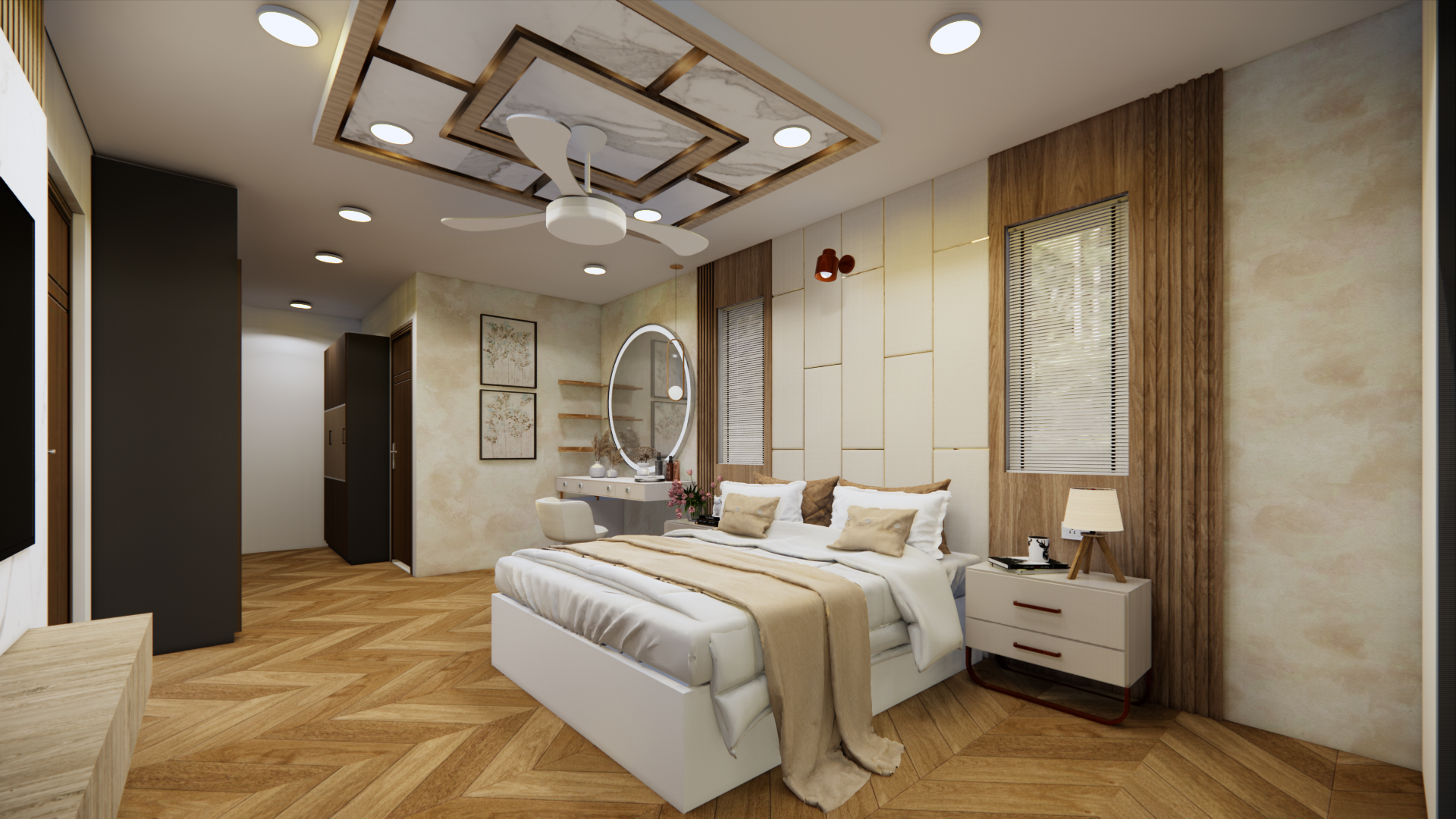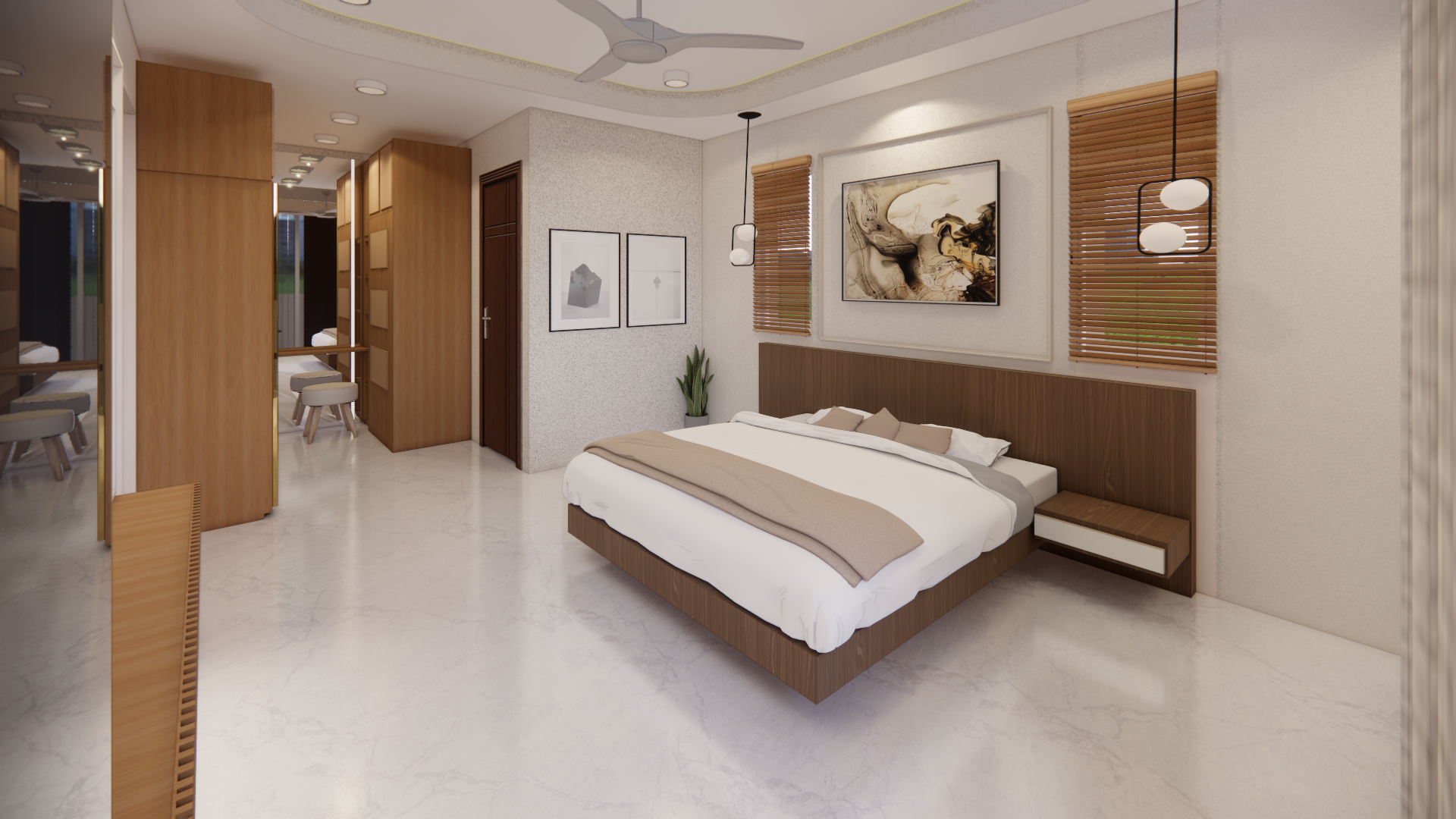 The upper level is designed to provide privacy and individuality for the younger members of the family. It includes the master bedroom, separate bedrooms for the son and daughter, and a quiet study area. Each space is designed with modern comforts, natural light, and personal character while maintaining a cohesive design language throughout the home.